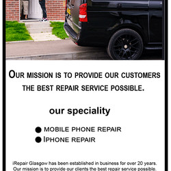 iRepair stores are located across Glasgow’s West End, South Side, Paisley, Shawlands, Duke St and Motherwell. Established in business for over 20 years, our mission is to provide our customers with the best repair service possible. Our professional repair technicians are well-qualified specialists with particular areas of expertise that cover a wide range of products including Smartphones, Laptops, PCs and iPods. As a result, and to the advantage of our clients, we offer the best possible prices for quality products and service in today’s keenly competitive market.