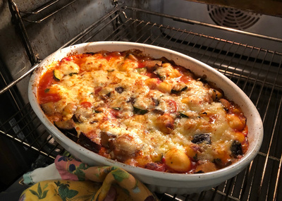 A Casserole With Gnocchi Aubergine And Tomatoes Brbrfor The Saucebrbr Cubed Aubergine And Courgette Fried With Onion And Garlicbr Tomatoes Choppedbr B