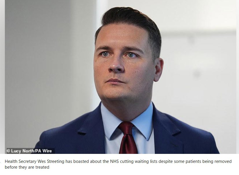 Lies and deception Nothing new from this Labour government Labour massaging NHS performance by paying hospitals £3m a month to delete people from waiting lists Ministers have been ridiculed for paying hospitals £3million a month to delete patients from waiting lists - making it look like the NHS is treating more people than it is. Sir Keir Starmer and Wes Streeting have repeatedly boasted about Labour’s success in cutting the number of patients waiting for treatment since they came to power. But new analysis of NHS figures suggests hundreds of thousands are being deleted from lists without receiving the treatment they were waiting for in a process known as ‘list cleansing’ or ‘validation’. Artificially’ reducing the waiting list gave a misleading impression of the NHS's performance. Two weeks ago the prime minister claimed figures showed that NHS waiting lists were down by ‘more than 86,000’, which was the ‘largest fall in a month for over two years’. ‘These aren't just numbers - it is thousands of people getting the care they need,’ he said. However, this drop was only achieved by removing thousands of patients from the waiting list through the ‘validation’ process. In November - the month that Starmer was referring to - 346,300 were removed from NHS waiting lists. This was 82,000 more than the month before and almost the entire claimed drop. However, NHS data also shows hospitals carried out about 10 per cent fewer operations and appointments in November than they did in October, suggesting fewer people were being treated. -
