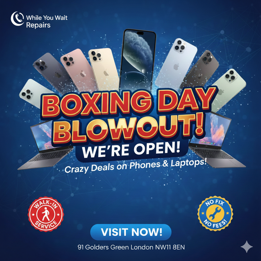 Did Santa bring you a new device, but your old one is sitting in a drawer with a cracked screen? Or maybe your laptop decided to quit right in the middle of your holiday movie marathon? At While You Wait Repairs, we know that a broken device isn't just a nuisanceβitβs your connection to the world. Thatβs why weβre open this Boxing Day to get you back online FAST! π οΈ Why Choose Our "While You Wait" Service? We don't just "fix" phones; we restore them to their former glory using high-quality parts and precision tools. True Same-Day Service: Most iPhone and Samsung screen repairs are completed in under 30 minutes. β±οΈ Expert Technicians: From microsoldering to logic board repairs, we handle what others can't. No Appointment Needed: Just walk in, grab a coffee nearby, and your device will be ready before you finish it. Price Match Guarantee: Found a better quote in North West London? Weβll match it and beat it! π° π§ Our Boxing Day Specials Include: β iPhone & Samsung Screen Replacements (Includes a FREE Screen Protector!) β MacBook & Laptop Battery Swaps β Charging Port & Water Damage Recovery β Certified Refurbished Tech β Perfect for late gifting! π Find Us In The Heart of Golders Green: 91 Golders Green Road, London, NW11 8EN (Right opposite Hummus Bar! π₯) π Instant Quote & Enquiries: Message us directly on Facebook or call/WhatsApp: 07483 334676 β° Boxing Day Hours: 10:00 AM - 5:30 PM We are open every day to keep North West London connected! #BoxingDaySale #PhoneRepairLondon #WhileYouWait #GoldersGreen #iPhoneRepair #LaptopRepair #TechDeals #CrackedScreen #LondonSmallBusiness #NW11 #SamsungRepair #MacBookRepair #SameDayRepair #SupportLocal -