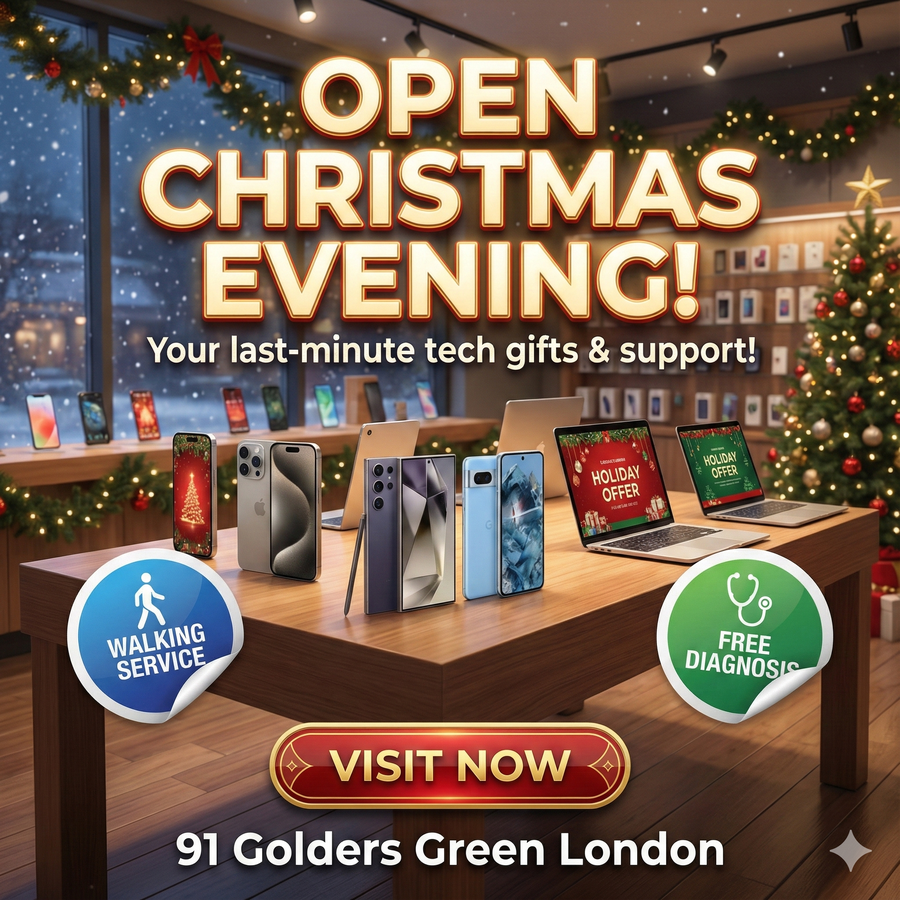Last-minute tech gifts or urgent repairs? Weβve got you covered this Christmas evening at While You Wait Repairs in Golders Green, NW11. π 91 Golders Green Road, London NW11 8EN We specialise in same-day phone, laptop & MacBook repairs and also stock high-quality refurbished devices, perfect for Christmas gifts π β iPhone, Samsung & Android Repairs β MacBook & Laptop Repairs β iPad & Tablet Repairs β Charging Issues, Screen Replacement, Battery Replacement β FREE Diagnosis β No Fix, No Fee β Walk-In Service β No Appointment Needed Whether itβs a cracked screen, battery issue, software problem, or youβre looking to buy a refurbished phone or laptop in London, our expert technicians are ready to help while you wait. β¨ Open Christmas Evening β¨ Fast, Reliable & Affordable β¨ Trusted Local Repair Shop in North West London π Visit us today or walk in anytime! #OpenChristmasEvening #PhoneRepairLondon #MobileRepairGoldersGreen #LaptopRepairLondon #MacBookRepairNW11 #iPhoneRepairNW11 #ComputerRepairLondon #RefurbishedPhonesLondon #RefurbishedLaptopsLondon #WhileYouWaitRepairs #GoldersGreen #NorthWestLondon #NW11 #FreeDiagnosis #WalkInRepair #SameDayRepair #TechRepairLondon #ChristmasTechSupport -